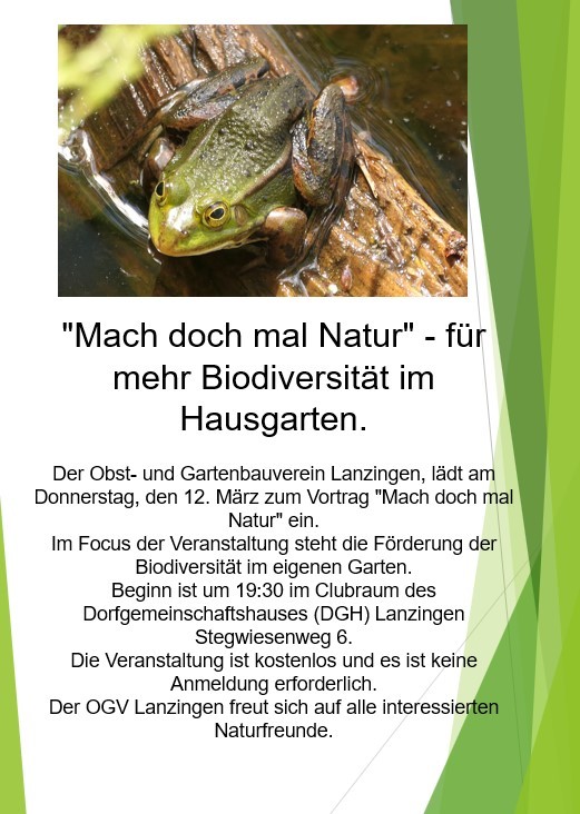 „Mach doch mal Natur“ – für mehr Biodiversität im Hausgarten. Vortrag in Theorie und Praxis von Peter Siebert, 19:30 Uhr im Clubraum des DGH