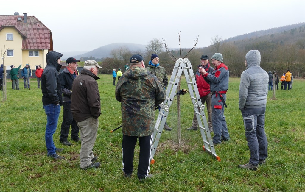 So trafen sich am Samstag den 25. Februar rund 40 Interessierte auf den Streuobstwiesen in Lanzingen.
