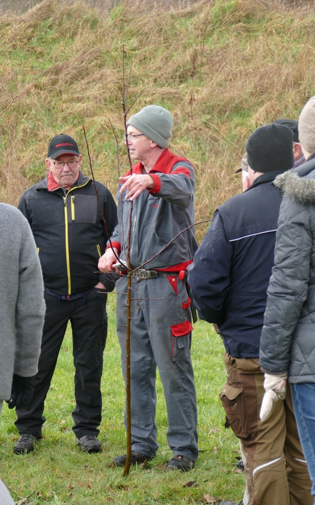 Auch der Einstieg in die richtige Baumschnitttechnik kann bei den noch kleinen Jungbäumen leicht erlernt werden. Alles ist noch gut überschaubar und die eigentliche Arbeit ist in einer halben Stunde erledigt ergänzt Fachwart Dieter Kilgenstein.