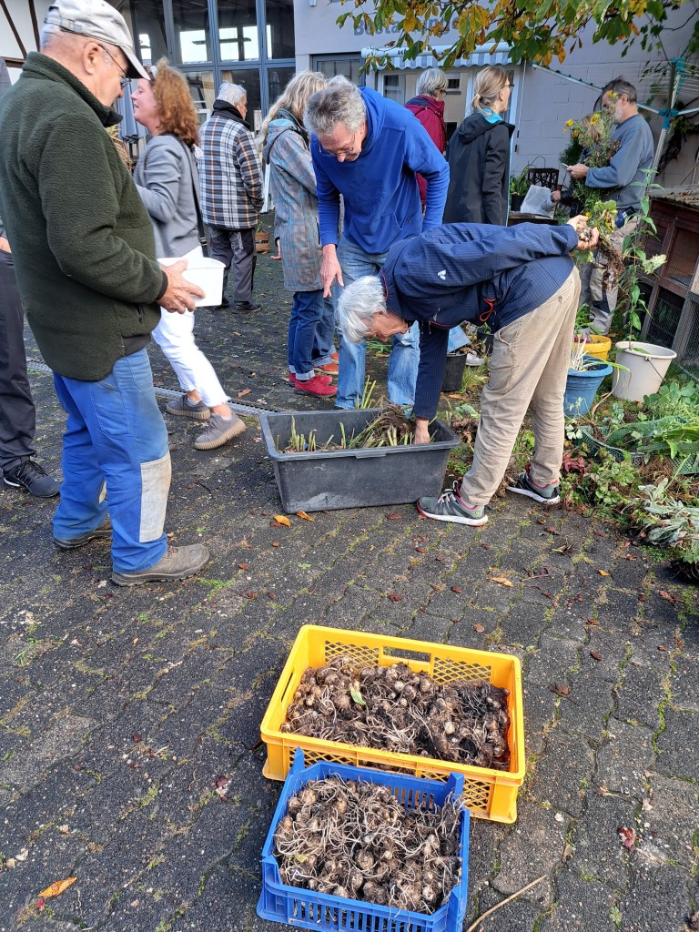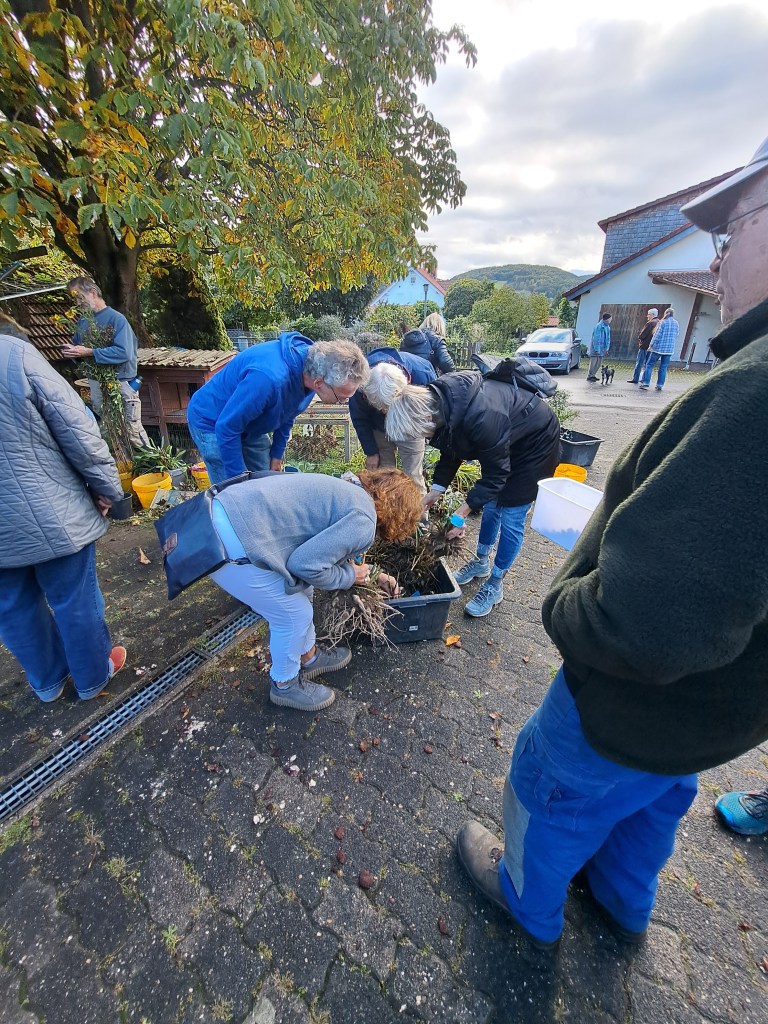 Trotz Regen am Morgen und dem überraschenden Beginn des Glasfaserausbaus im Mühlgraben fanden sich bei herrlichem Sonnenschein viele Pflanzenliebhaber im Hof der Schreinerei Schick ein. Der erste „Kunde“ war bereits kurz nach 9 da und wurde von Iris Schick-Schäfer freundlich darüber informiert, dass die PTB heute wirklich erst um 10 starten würde. Sie erläuterte dazu, dass bei der letzten PTB im Frühjahr bereits vor 10 alles weggewesen sei und dies ist nicht in Ordnung für Teilnehmer, die pünktlich um 10 dazustoßen. Nach und nach füllte sich der Hof mit Himbeeren, Rudbeckia (Sonnenhut), schwarzen Johannisbeeren, Schmetterlingsflieder, Stockrosen und vieles mehr, die überall aufgestellt wurden. Ein Wirtheimer hatte sich sogar die Mühe gemacht und alle seine Schwertlilien in bunt ausgedruckt. Auf Nachfrage ist er gerne bereit von seinen mehr als 100 verschiedenen Schwertlilien welche abzugeben. Also, wer daran Interesse hat, bitte beim OGV Lanzingen melden, dann vermitteln wir gerne den Kontakt. Ein Teilnehmer aus Flörsbach hatte eine Fachfrage zur Birnensorte „Gräfin von Paris“. Er wollte wissen, wie lange diese in der Regel gelagert werden kann (bis Dezember) und warum diese trotzdem nach nur 14 Tagen anfingen vom Stiel her zu faulen (Wespenstich am Stiel). Neben Gartenzeitschriften und hübschen Übertöpfen von Fr. Haese gab es verschiedenfarbige gefüllte und ungefüllte Stockrosen, Mädchenauge, Astern aller couleur, Fingerhut und Maiglöckchen. Von Fr. Kilgenstein kamen 4 verschiedene alte Dahliensorten von ca. 1935 in mehreren Containern, die reißenden Absatz fanden. Aus Kempfenbrunn wurde 1 Steige mit unterschiedlichsten Calla-Blumenzwiebeln mitgebracht. Auch Samen für die Schachbrettblume, eine Orchideenart konnten mitgenommen werden. Das nächste Mal …“wolle er dann auch noch Edelweis mitbringe“…, was viele Gartenbegeisterte erfreute. Der „ewige Kohl“ wurde mit der Erläuterung, einfach die Wurzel in die Erde stecken und immer wieder dir Blätter ernten dann gleich mehrfach zwischen den Interessenten aufgeteilt. Im Rückblick hat sich der Beginn mit 10 Uhr gelohnt, wie viele Teilnehmer bestätigten. Man konnte in Ruhe stöbern, schon eine Auswahl treffen und gemeinsam Erfahrungen austauschen. Wir sind wieder überrascht, dass so viele den Weg auf Gelnhausen, Waldrode, Flörsbach, Bad Orb, Kempfenbrunn und dem Freigericht nach Lanzingen gefunden haben.