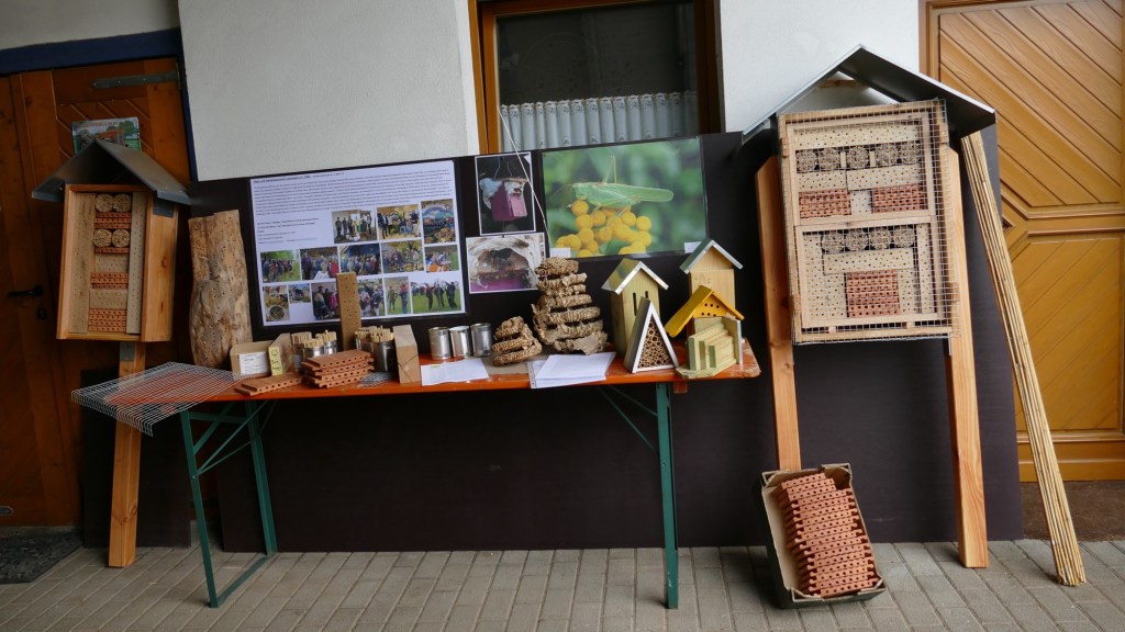 „Warum aber Nisthilfen für Insekten bauen?“. Die Frage sei ganz einfach zu beantworten. Nicht nur die Honigbiene bestäubt unsere Blüten, sondern auch viele weitere Insekten. Ist es draußen im zeitigen Frühjahr noch kalt, dann bleiben die Honigbienen einfach ein bißchen länger zuhause im warmen. Obstblüten bleiben unbestäubt. Dann kommen Wildinsekten zum Einsatz, die fliegen früher und sorgen somit für eine reichhaltige Ernte im Herbst, auch wenn das Frühjahr zu kalt für die Honigbiene war.