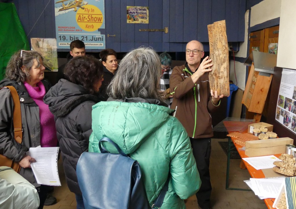 „Geeignete Nisthilfen für Insekten bauen – aber richtig“, unter diesem Motto lud der Obst- und Gartenbauverein Lanzingen zu einem Workshop ein. Auch bekannt unter der Bezeichnung Insekten- oder Bienenhotel erfreuen sich die Nisthilfen immer größerer Beliebtheit. Rund 20 Wildbienenfreunde waren erschienen, um sich von Peter Siebert Anregungen und Ratschläge für den richtigen Bau einer Insektennisthilfe einzuholen. „Leider wird viel Schrott im Handel angeboten“, so Peter Siebert, der auch ehrenamtlicher Blühbotschafter für die Insektenvielfalt der Initiative „Main.Kinzig.Blüht“ ist.