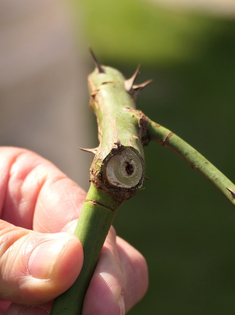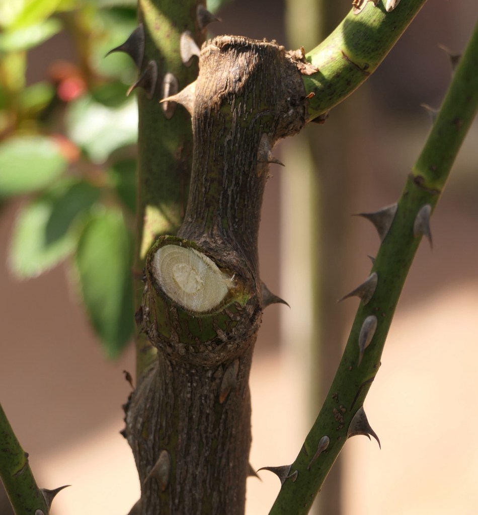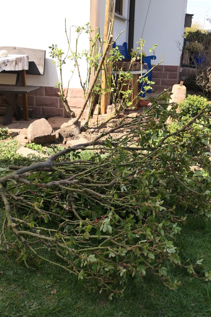 Es gilt den Rosenstöcken im Frühjahr mit einem „starken Schnitt“ den Impuls zur Bildung vieler neuer Triebe zu geben. Denn viele Neutriebe bedeuten viele Blüten.