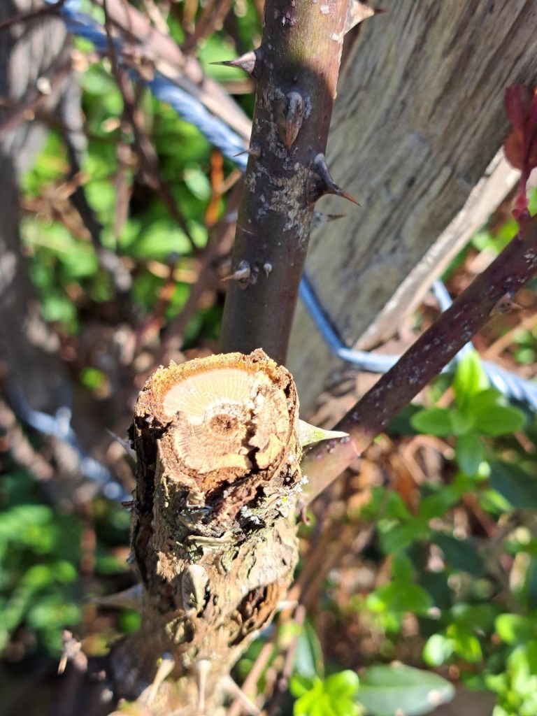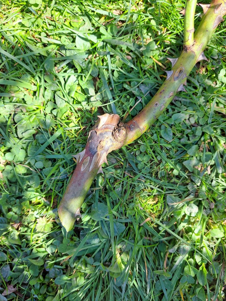 Der Rosenstock wird genau betrachtet und alle Stellen, die braun sind werden so weit weggeschnitten, bis sich in der Schnittfläche frisches Grün zeigt, also keine braunen Verfärbungen mehr zu sehen sind