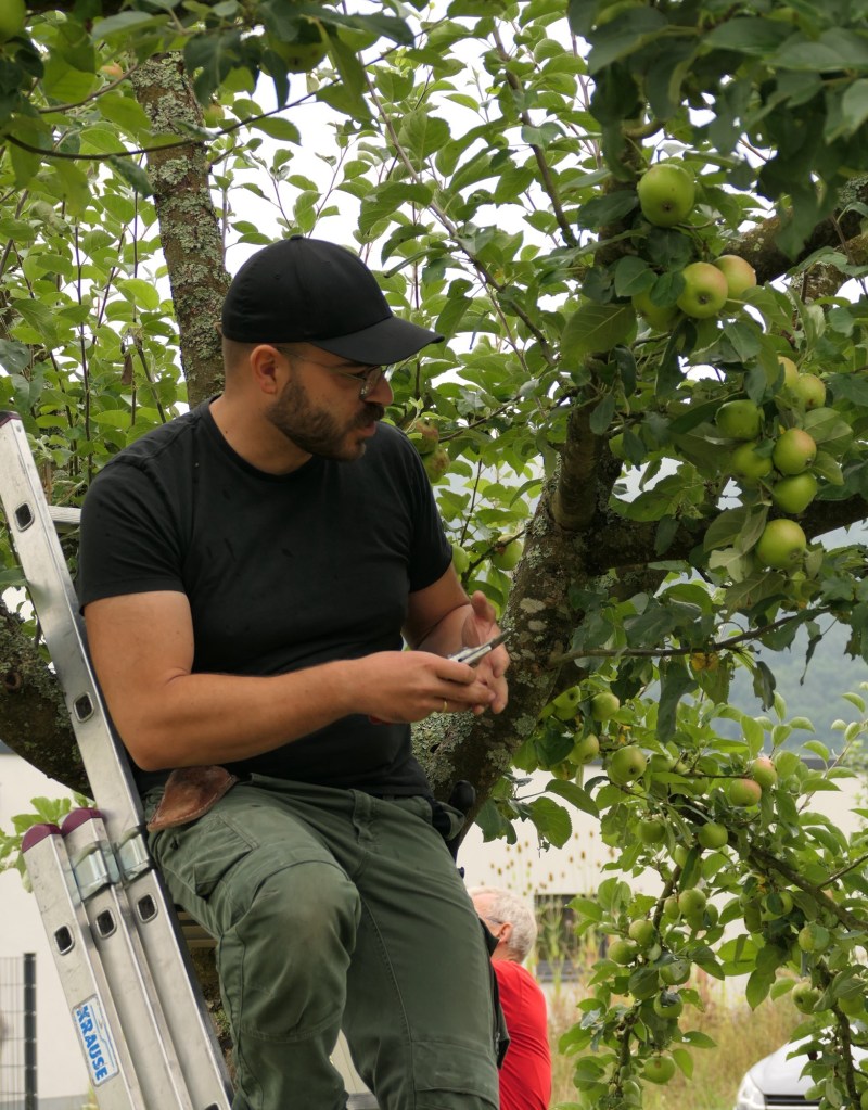 Wobei es wirklich eine Herausforderung war, bei dem stark tragenden Exemplar auch auf die ggf. notwendie Ausdünnung / Entfernen von schwachen Äpfeln hinzuweisen, damit alle anderen Äpfel am Ende umso besser ausreifen können.