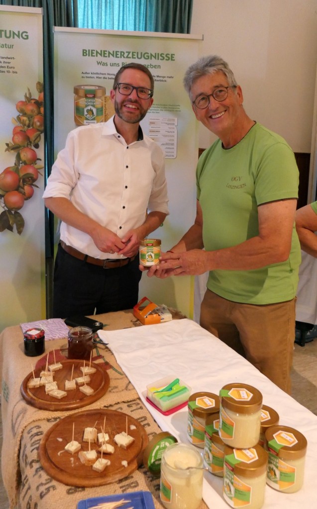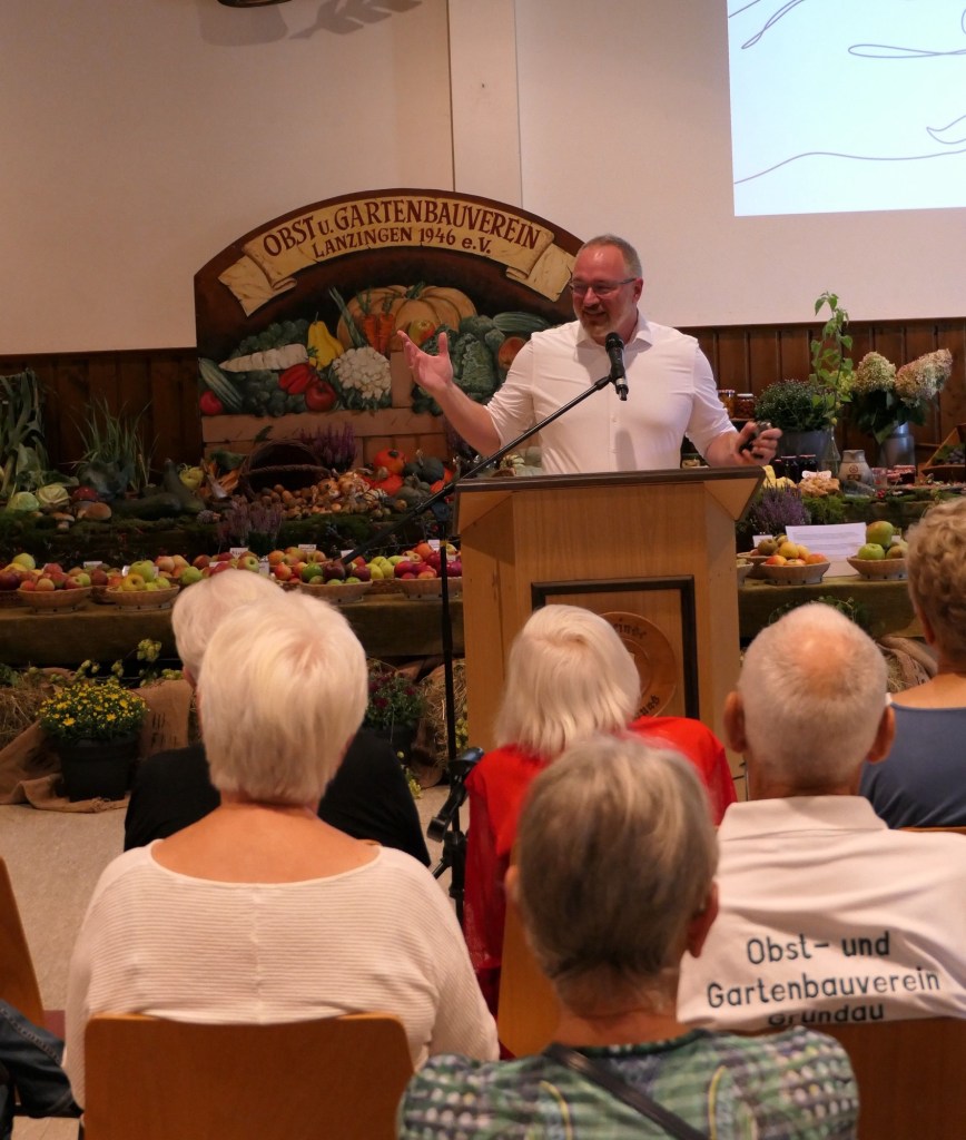 In den folgenden Grußworten wurde mehrfach die Bedeutung des großen ehrenamtlichen Engagements der „Obst- und Gartenbauer“ zum Ausdruck gebracht. Die Ehrengäste zollten dieser Arbeit großen Respekt, trägt sie doch neben der Erzeugung von rein biologisch und regional angebautem Obst und Gemüse auch zum Erhalt der einzigartigen Streuobstwiesen bei.